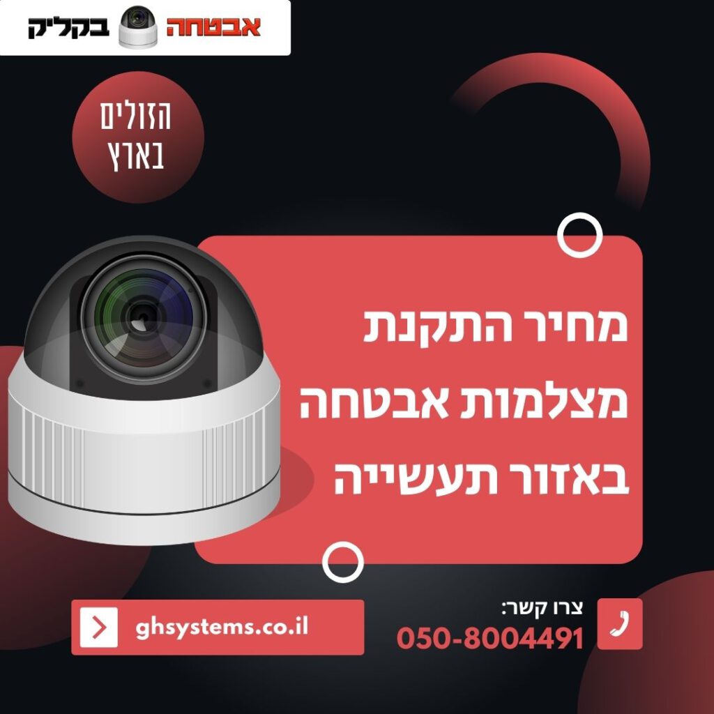 • מחיר התקנת מצלמות אבטחה באזור תעשייה של עשר מצלמות אבטחה באזור תעשייה – בין עשרת אלפים ₪, לבין חמישה עשר אלף ₪.